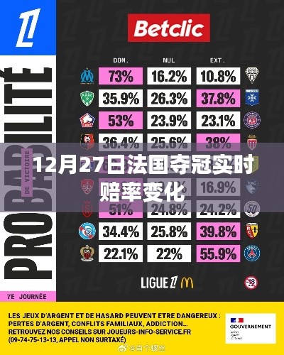 隨著足球賽事的激烈進(jìn)行,球迷們對于比賽結(jié)果的好奇愈發(fā)濃烈,特別是在大型賽事如世界杯期間,奪冠的實(shí)時賠率變化成為了眾多球迷關(guān)注的焦點(diǎn),本文將圍繞12月27日法國奪冠實(shí)時賠率變化這一主題展開,探討背后的數(shù)據(jù)動態(tài)和可能的影響因素。