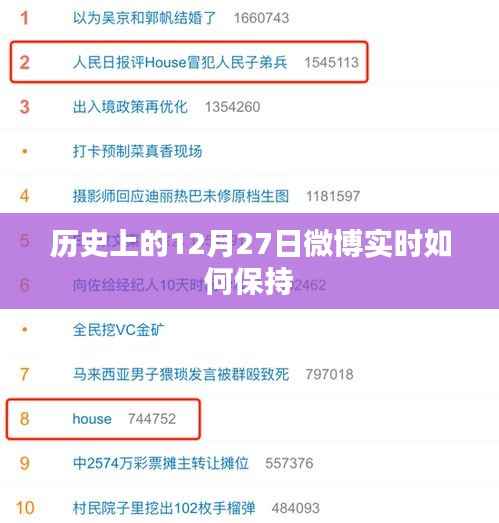 隨著社交媒體的快速發(fā)展,微博已經成為人們獲取信息的重要途徑之一,歷史上的12月27日,微博在信息傳播方面扮演著舉足輕重的角色,本文將探討在這一特殊日子里,微博實時信息的保持與傳播策略。