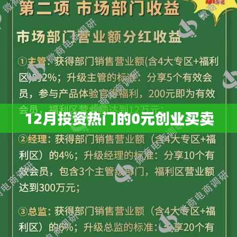隨著互聯(lián)網(wǎng)的蓬勃發(fā)展,創(chuàng)業(yè)門檻逐漸降低,越來(lái)越多的人開(kāi)始關(guān)注零成本或低成本的創(chuàng)業(yè)機(jī)會(huì),在即將步入年終的12月,有哪些0元?jiǎng)?chuàng)業(yè)買賣成為投資熱門呢?本文將為您揭曉當(dāng)前的投資趨勢(shì)和潛在商機(jī)。