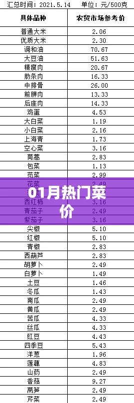 隨著新的一年的到來(lái),一月份的市場(chǎng)充滿了生機(jī)與活力,在這個(gè)季節(jié)交替的時(shí)刻,菜價(jià)也隨著季節(jié)的變化而波動(dòng),本文將為您詳細(xì)介紹一月份熱門(mén)菜的價(jià)格走勢(shì)。