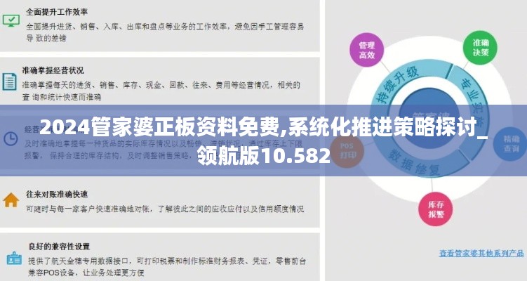 在探討系統(tǒng)化推進策略之前,我們先來了解一下管家婆的幾個核心特點,以下是2024管家婆正板資料免費、領航版10.582的幾大亮點功能:
