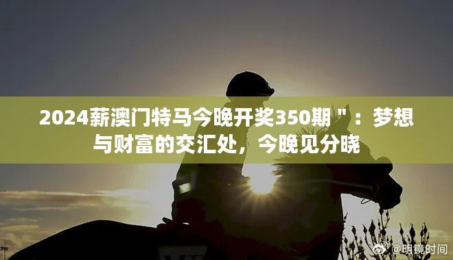 2024薪澳門特馬今晚開獎(jiǎng)350期":夢(mèng)想與財(cái)富的交匯處,今晚見分曉