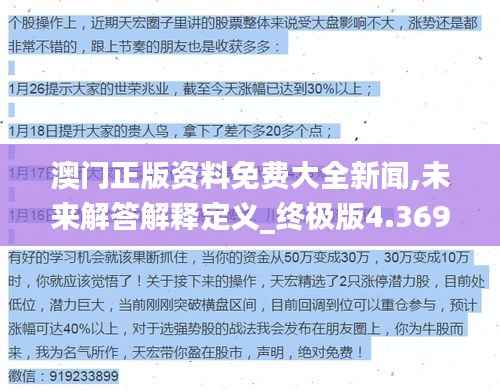 澳門正版資料免費大全新聞和未來解答解釋定義_終極版4.369是澳門政府回應數字化時代挑戰(zhàn)的關鍵舉措之一,通過加強版權保護和法律監(jiān)管,澳門已經建立起一個讓公眾在尊重版權的前提下免費獲取高標準的正版資料的平臺,展望未來,澳門的免費正版資料將更加人性化、便捷化,并在國際版權信息交流上發(fā)揮重要作用,借助澳門正版資料免費大全新聞,我們不僅能夠見證澳門版權政策的進步,更能夠享受信息時代帶來的便利和效益。