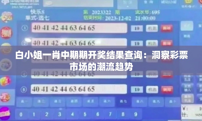 白小姐一肖中期期開(kāi)獎(jiǎng)結(jié)果查詢(xún):洞察彩票市場(chǎng)的潮流趨勢(shì)