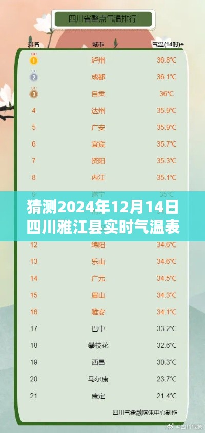 揭秘四川雅江縣氣溫奧秘,一場關(guān)于氣溫的探險之旅(預(yù)測至2024年12月14日實時氣溫表)